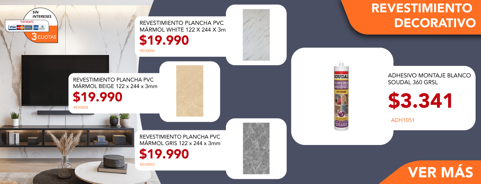 Destacado SKU: REV0003 Revestimiento plancha PVC mármol Gris122 x 244 x 3mm $22.990 Retiro disponible Despacho disponible Agregar