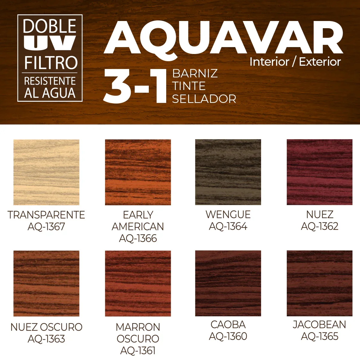 Barniz Aquavar transparente 1 galón. Protege sin alterar el color natural.