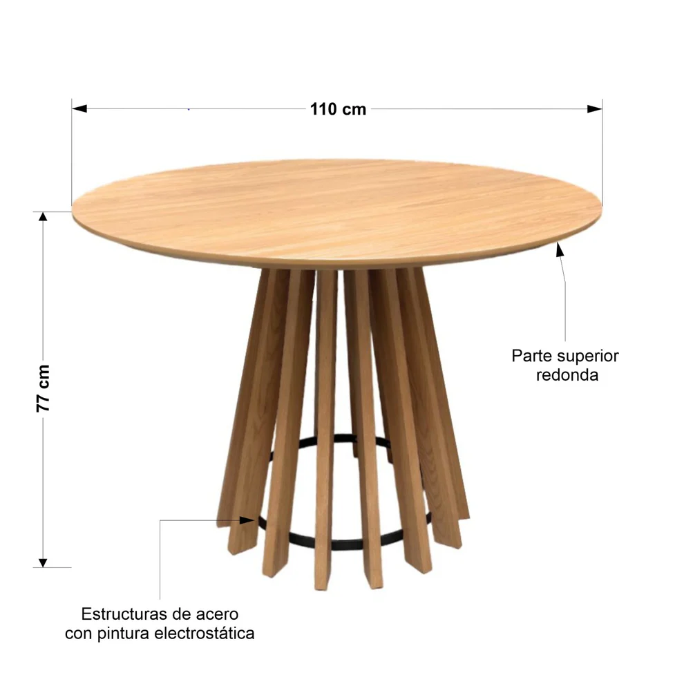 Fabricada con material MDP de alta calidad, esta mesa de comedor tiene un acabado mate y una cubierta de 25mm de grosor. Su estructura robusta y diseño redondo la hacen ideal para espacios pequeños y grandes. El armado es necesario, pero sencillo, para que puedas disfrutarla rápidamente.