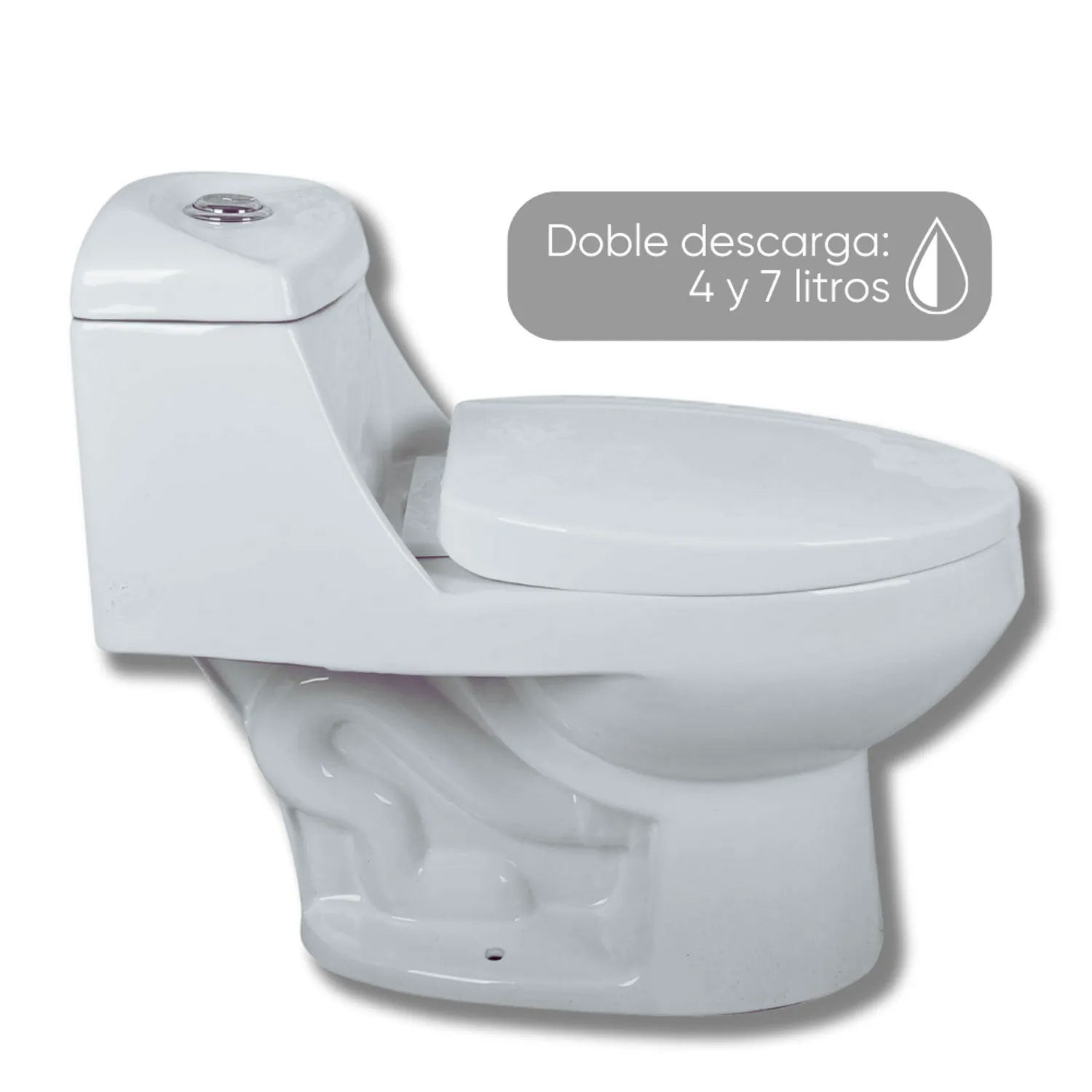 Cuenta además con un sistema Eco dual flush de 4 y 7 litros, diseñado para optimizar el consumo de agua de manera eficiente y sustentable.