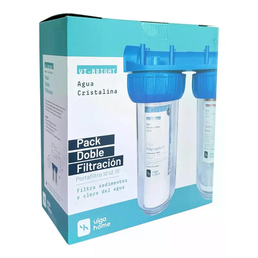 Pack doble filtración para agua, incluye filtros de sedimentos y carbón activado.
