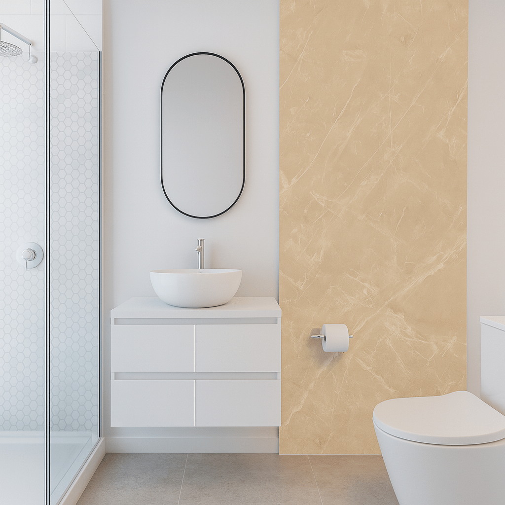 El Revestimiento Plancha PVC Mármol Beige 122x244x3 mm combina elegancia y funcionalidad, ideal para renovar muros interiores con un acabado moderno y luminoso. Su diseño tipo mármol beige aporta calidez y sofisticación, simulando la piedra natural sin el peso ni el costo de materiales tradicionales.