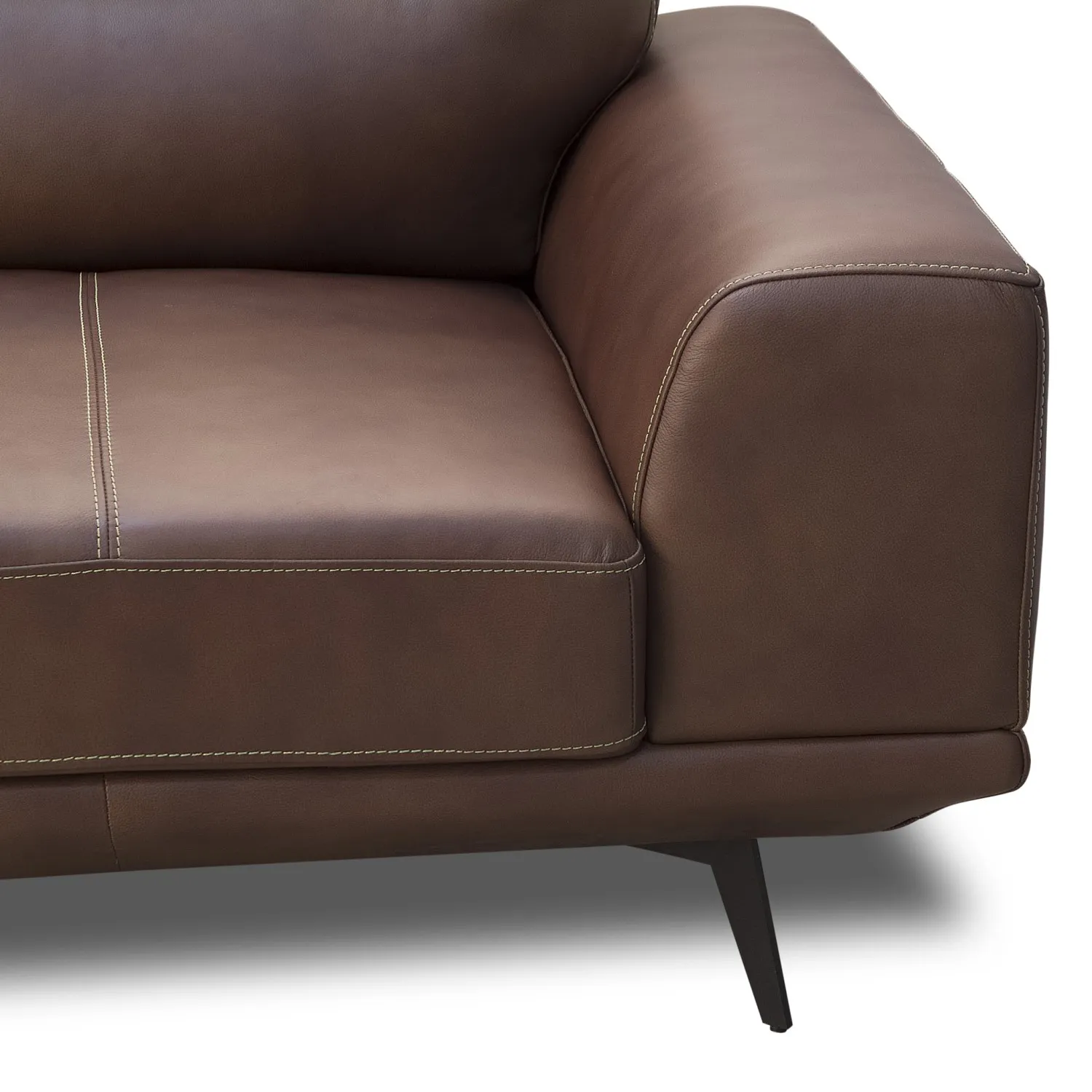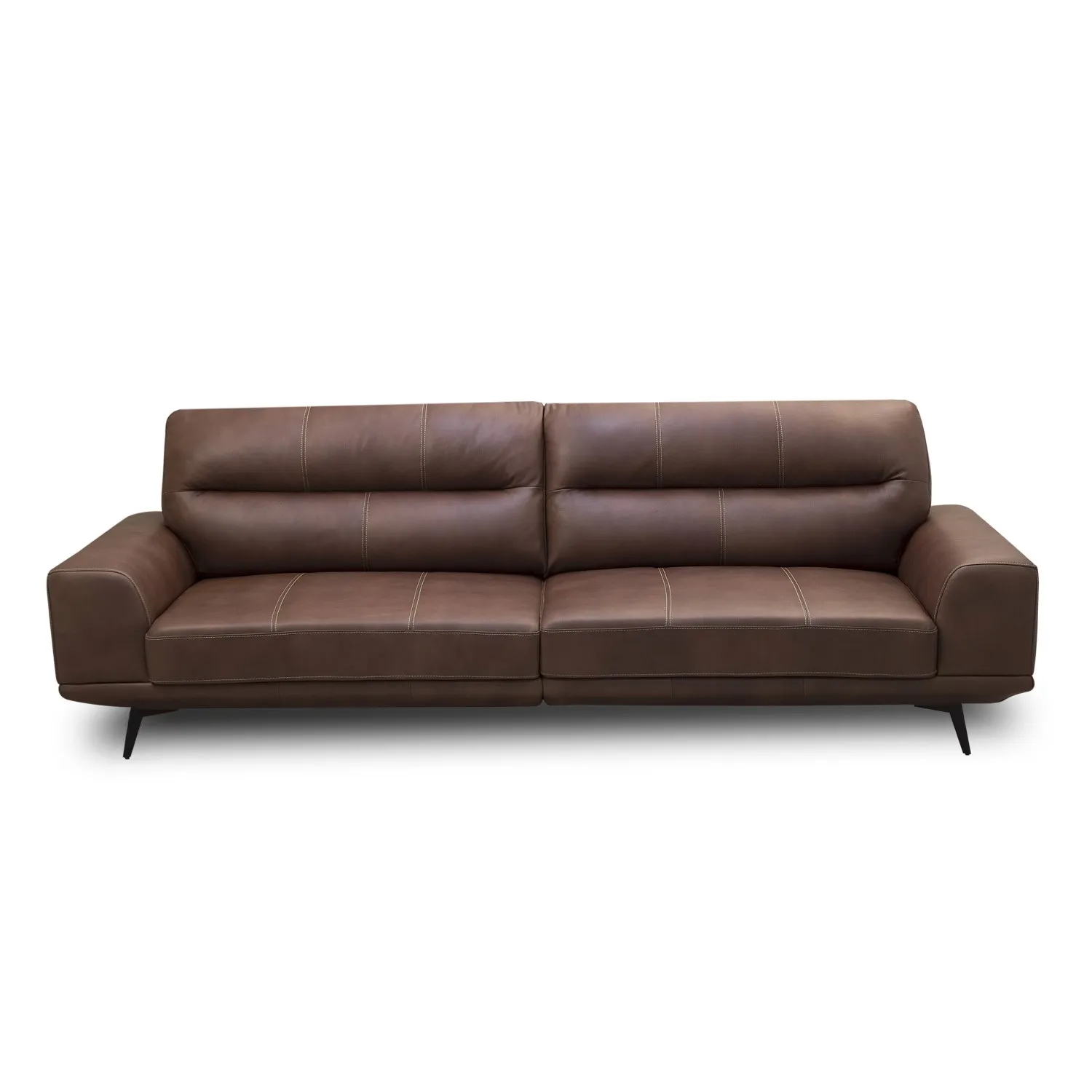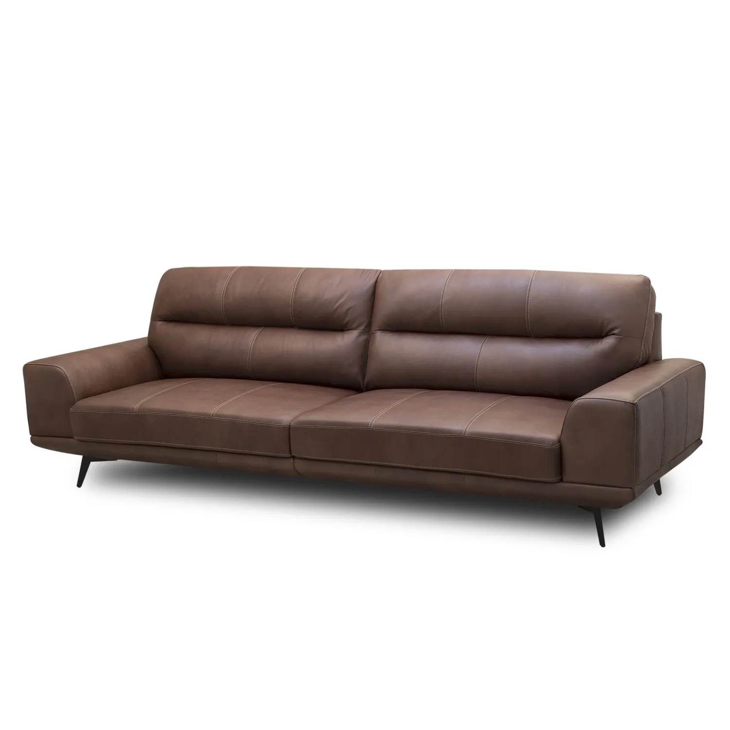 Este sofá es un mueble de diseño elegante y sofisticado, con un color café intenso que combina perfectamente con una variedad de estilos decorativos. El cuero es un material resistente y duradero que se desgasta bien con el tiempo, desarrollando un atractivo brillo y textura.
